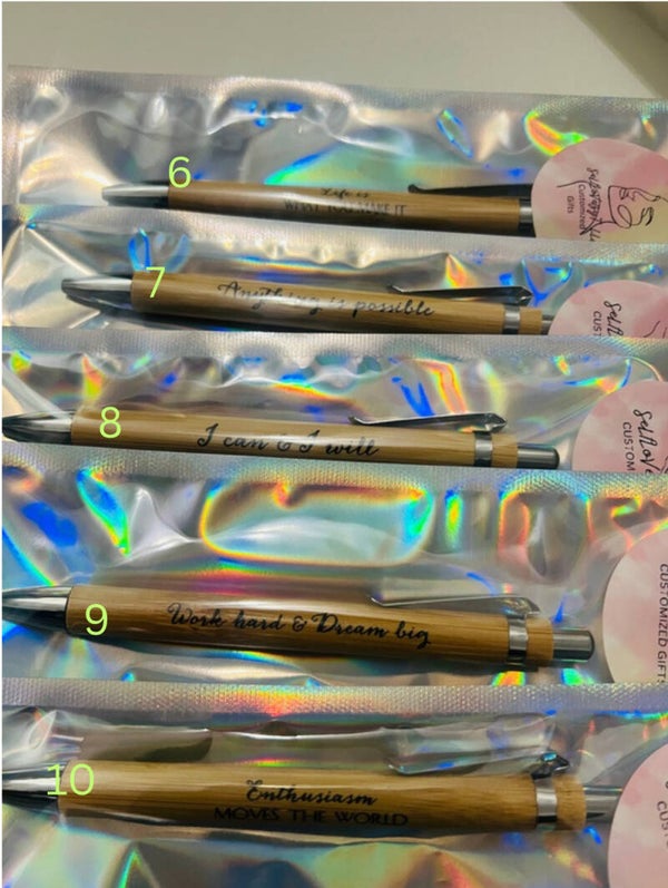 Unlock the power of positivity with our Affirmation Ink Pens. Each pen is elegantly designed to inspire and motivate, featuring uplifting affirmations that encourage a positive mindset with every stroke.